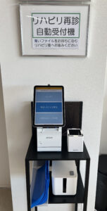 1F受付ロビー内にリハビリ自動受付機を設置しました。