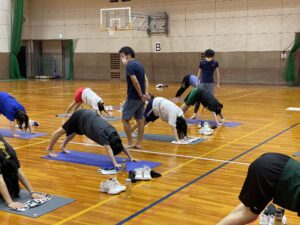9月8日に院長、理学療法士 田中、看護師 高平が金沢工業大学 女子バスケットボール部に、スポーツ障害予防に有効なヨガCPYの指導を行いました。