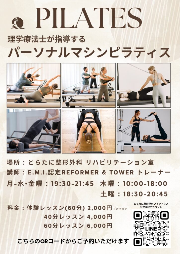 当院で行っている、ヨガ・ピラティス・マシンピラティスの予約・予約変更などができます。