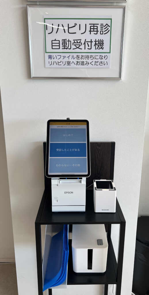 リハビリ自動受付機をご利用いただくと、受付でお待ちにならずにリハビリに進めます。